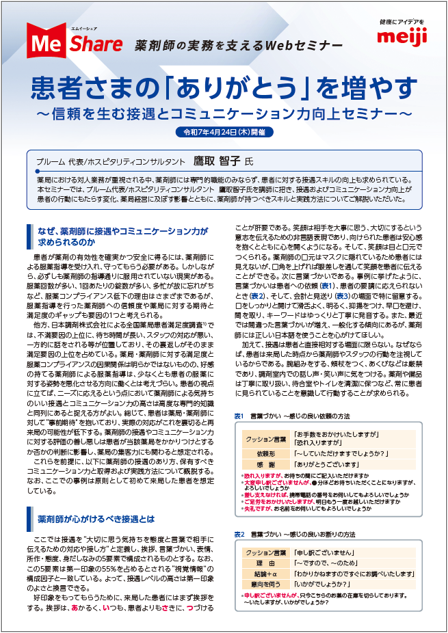 本セミナーでは、医療機関での研修も多く実施されている鷹取智子氏を演者に招き、接遇・コミュニケーションの基本をおさえながら、現場での実践的な対応力を強化し患者との信頼関係を深める方法についてご講演いただきました。