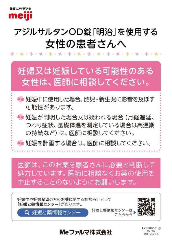 アジルサルタンOD錠「明治」をご使用の患者さんにお渡しください。