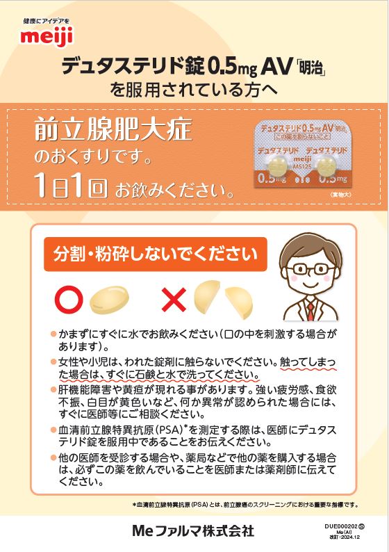 デュタステリド錠AV「明治」をご使用の患者さんにお渡しください。