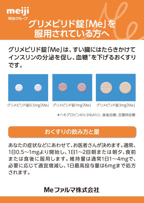 グリメピリド錠「Me」をご使用の患者さんにお渡しください。