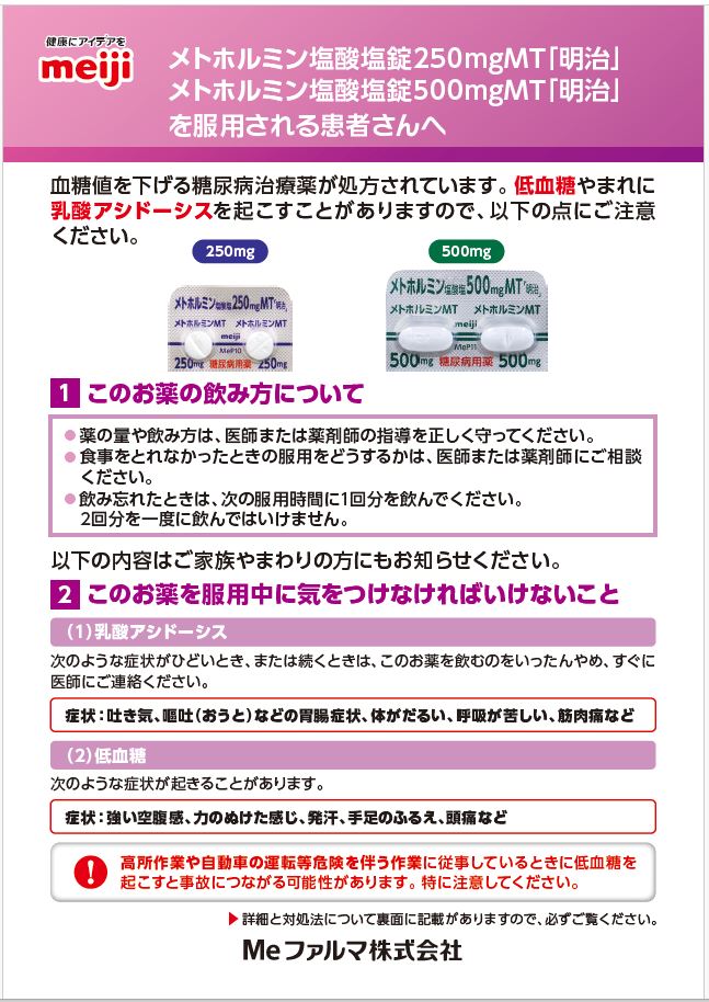メトホルミン塩酸塩錠MT「明治」をご使用の患者さんにお渡しください。