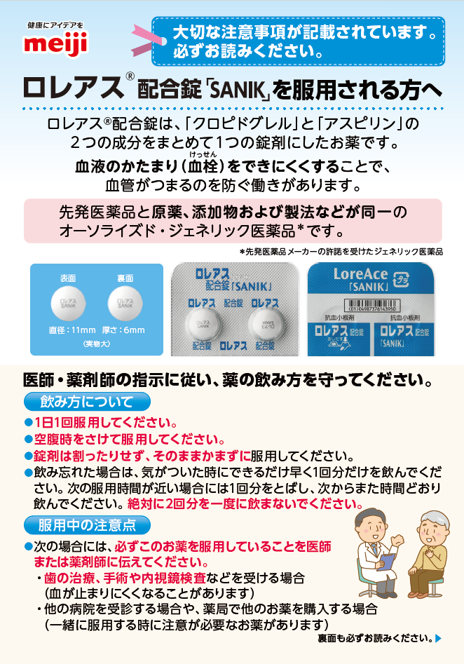 ロレアス配合錠「SANIK」をご使用の患者さんにお渡しください。