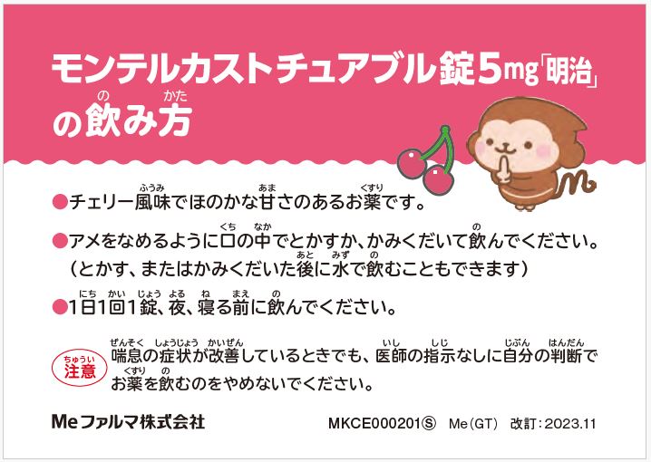 モンテルカストチュアブル錠「明治」をご使用の患者さんや保護者の方に
