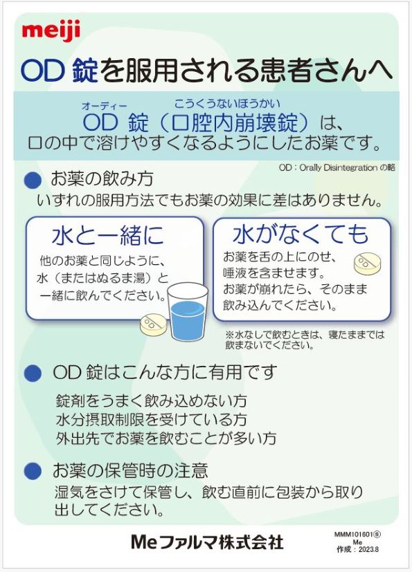 口腔内崩壊錠(OD)錠の飲み方を説明する指導箋です。