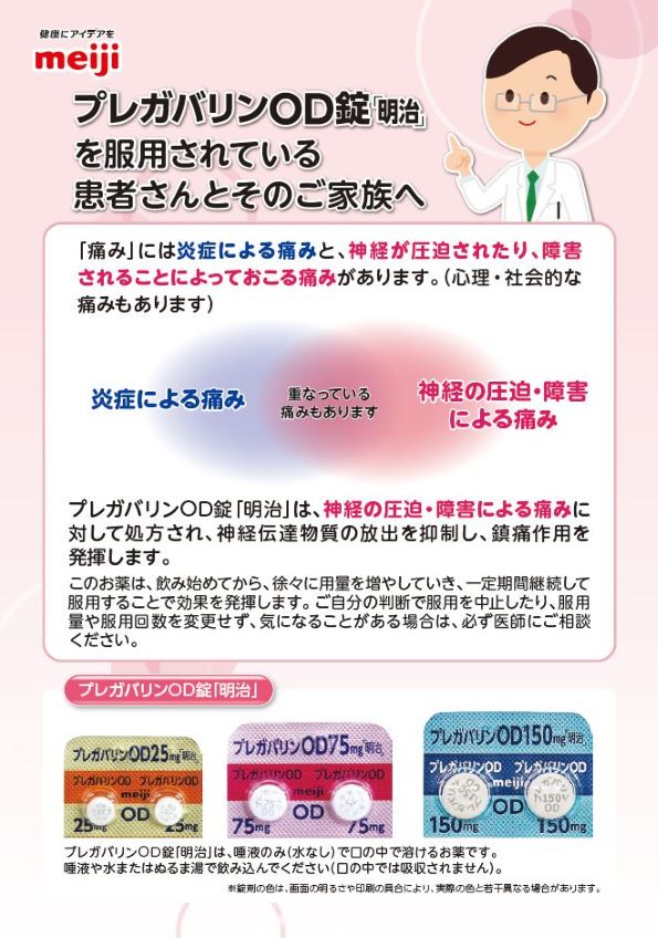 プレガバリンOD錠「明治」をご使用の患者さんにお渡しください。