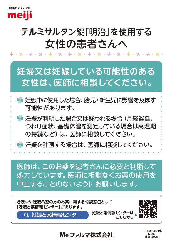 テルミサルタン錠「明治」をご使用の患者さんにお渡しください。